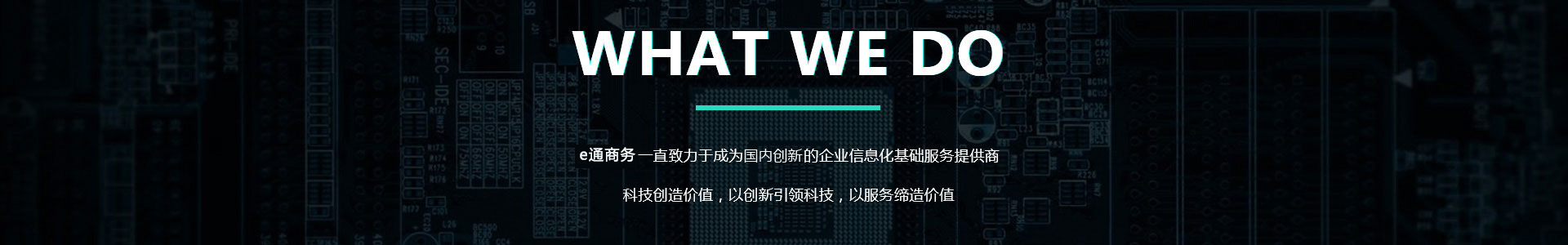 由众多互联网行业资深顾问组成的业务团队,多年来为广大合作伙伴、终端客户提供互联网服务。丰富的行业经验,高效的问题处理,获得广大合作伙伴的一致认可;拥有由多名网络安全专家、软件工程专家和项目管理专家组成的研发队伍。E通商务在主机系统、邮局系统、企业信息化平台等方面有独立的软件产品,并相应取得国家认证的"软件著作权";技术中心拥有稳定运行保障体系,服务器群分布在国内外多个五星级IDC机房及国家级骨干节点机房。专业品牌服务器平台、完善的运作保障体系、电信级网络设备以及网络实时监控系统等,为客户提供高质量、高效率、高安全性的7x24小时专业运行保证。