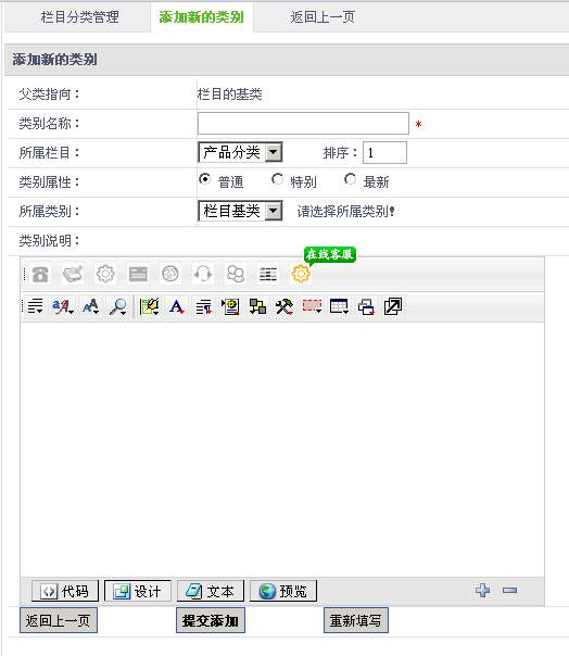 点击“添加新的类别”打开添加栏目窗口,如下图: