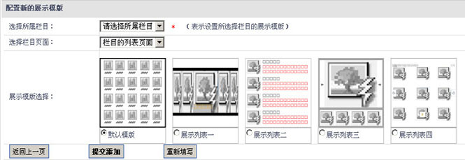 对图文栏目列表页与栏目详细内页展示风格进行修改与添加,1.点击“配置新的展示模版”