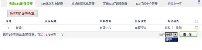 在“所有的页面SEO配置”列表中显示网站内有配置SEO的页面列表,在列表里可以修改、删除页面的SEO配置。