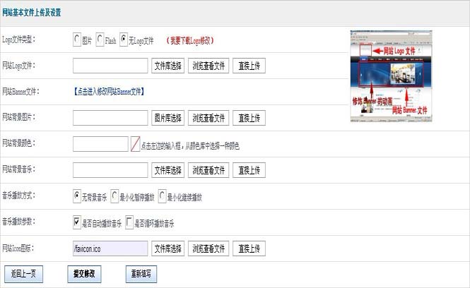 Mofne网站建设系统支持自由更换LOGO、Banner、背景颜色、背景音乐、网站图标。